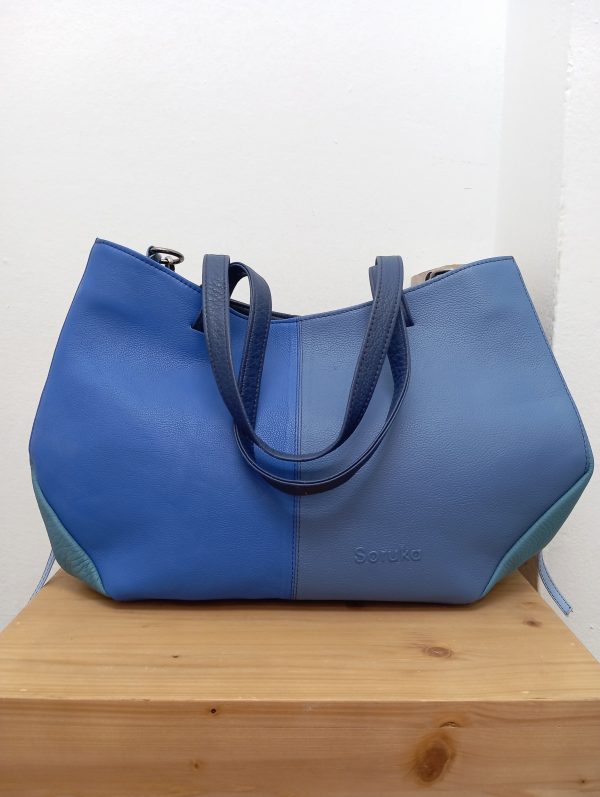 Ampia borsa a spalla o a tracolla con chiusura a magnete. Sui lati sono presenti due coppie di bottoni a pressione che possono rimpicciolire o allargare leggermente le dimensioni della borsa. Taschine porta oggetti all’interno e tasca esterna e posteriore con zip. Tracolla regolabile in pelle.
