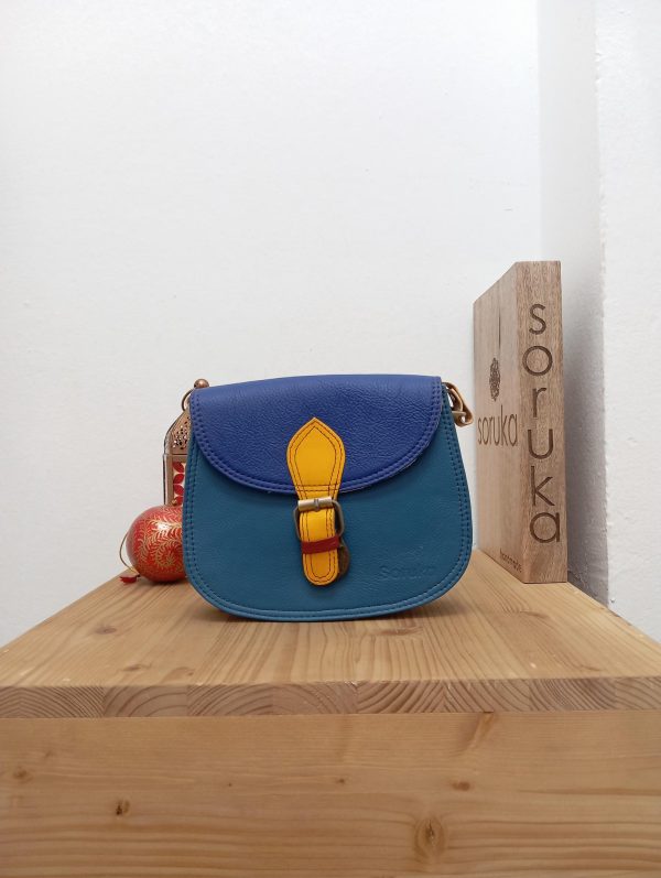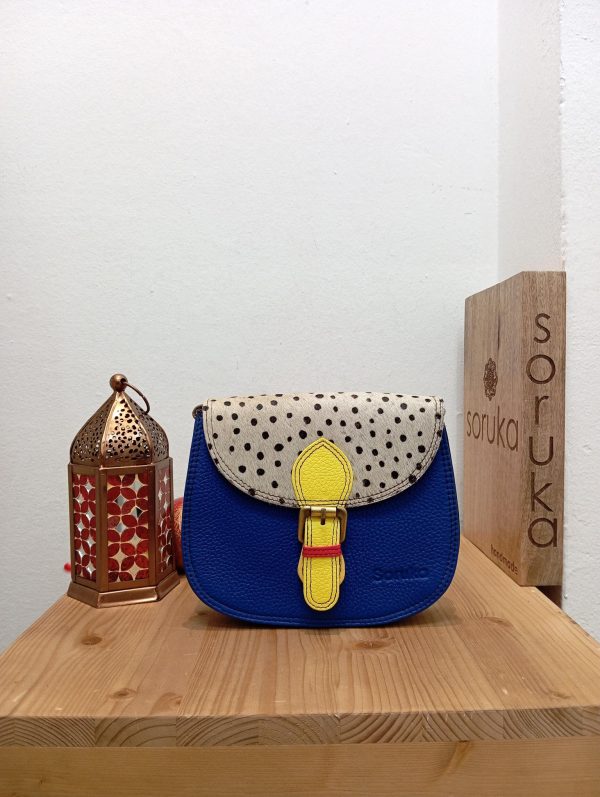 Minibag divisa in tre scomparti di cui uno con zip, con chiusura con patella e magnete.