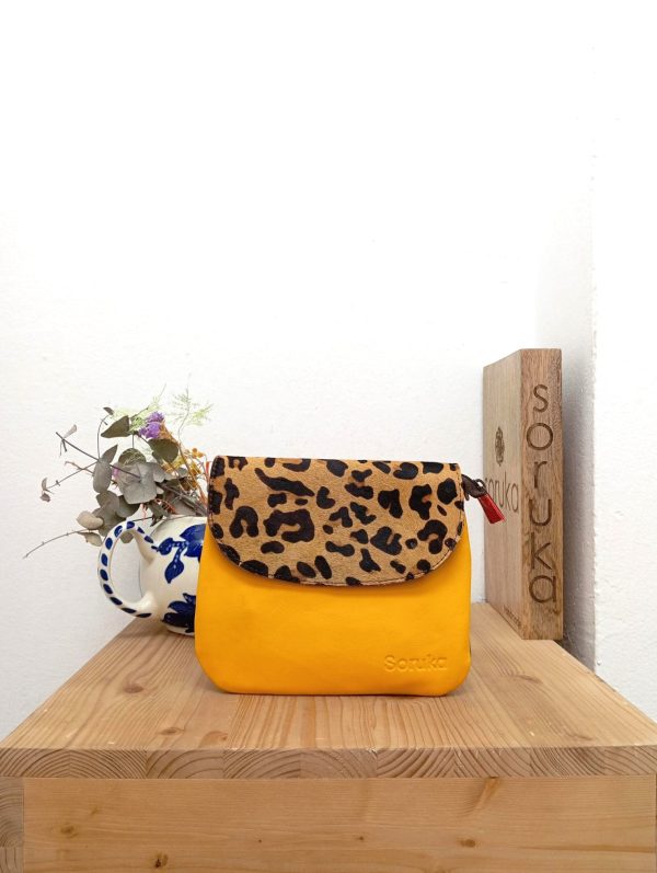 | Pochette tondeggiante con dettaglio della patella animalier e chiusura a zip. La pochette presenta una taschina interna e una esterna con zip. Può essere portata a mano o con la tracolla in pelle regolabile. |