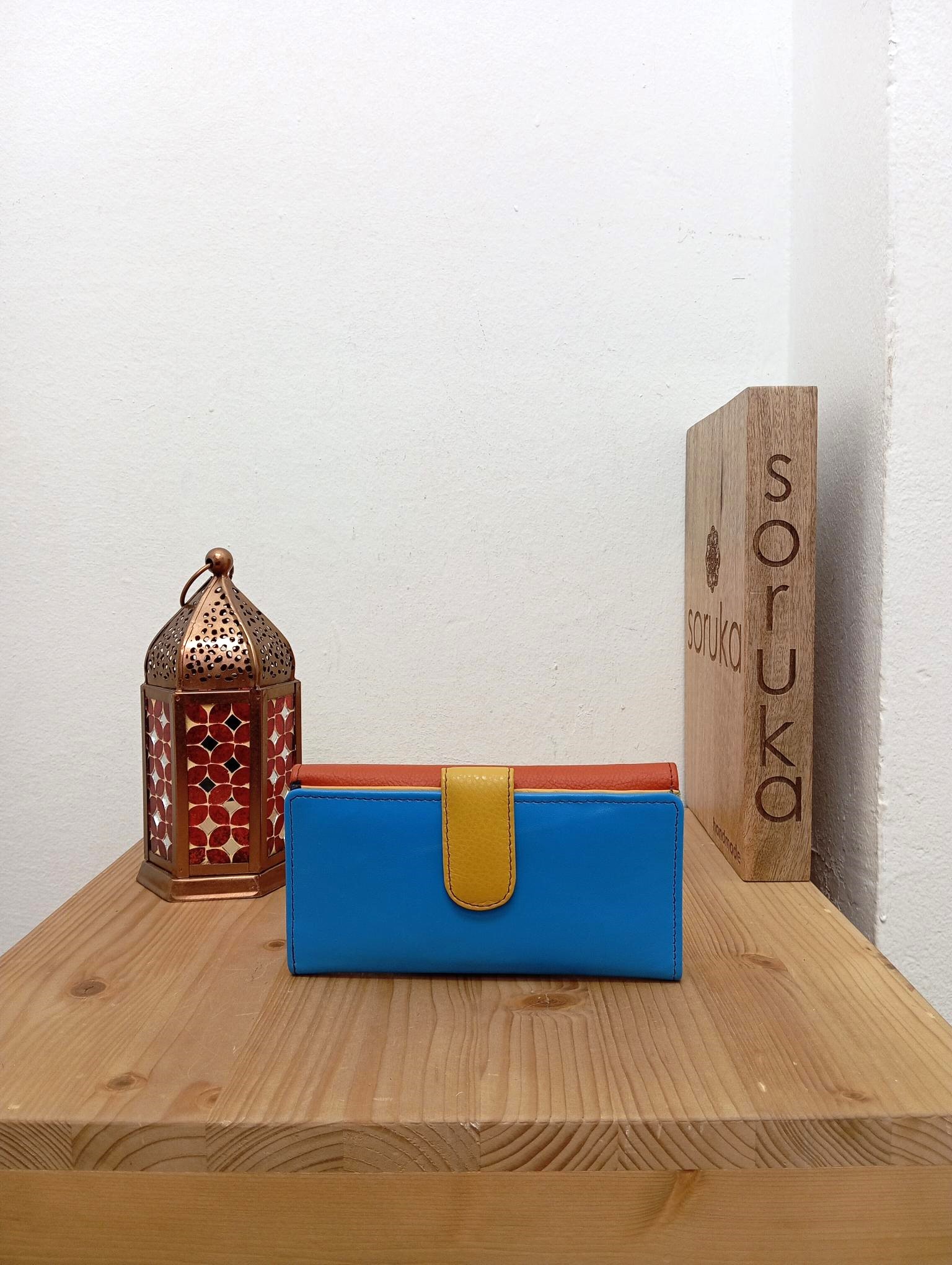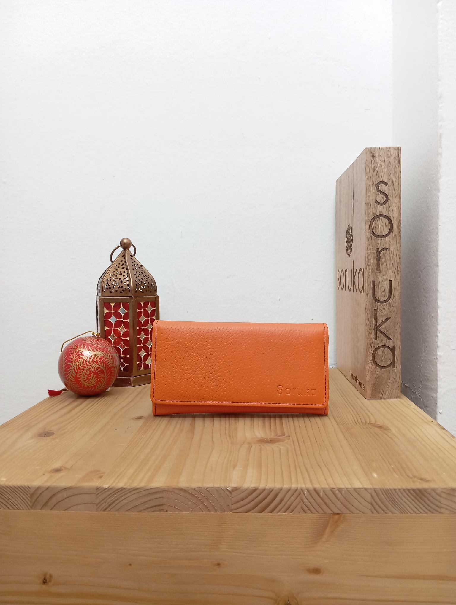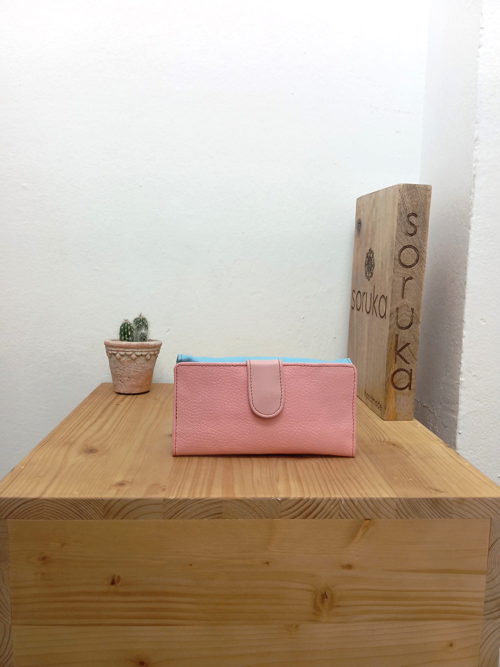 Portafoglio in pelle liscia con due scomparti con chiusura a magnete. Nel primo ci sono tre spazi per banconote o documenti, una tasca portamonete con zip e 5 spazi portatessere. Nel secondo altri 9 spazi portatessere e due tasche per documenti.