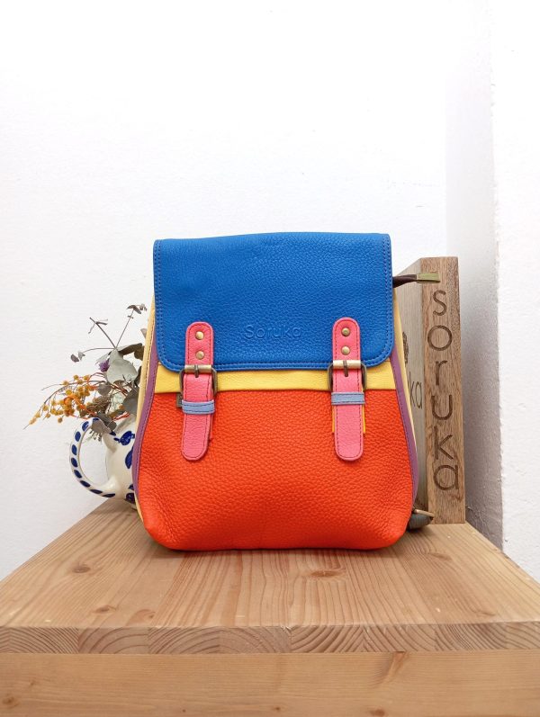 Zaino di piccole dimensioni con spalline regolabili che possono scorrere per diventare tracolla e asola per appenderlo. Due magneti e una zip ne compongono la chiusura, mentre all’interno troviamo una tasca grande e una piccola chiusa con zip.