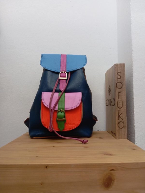 Zaino con tasca centrale con chiusura a tiranti e magnete che presenta anche una taschina interna con zip. Sulla parte esterna c’è una taschina chiusa con zip e magnete. Spalline in pelle regolabili.