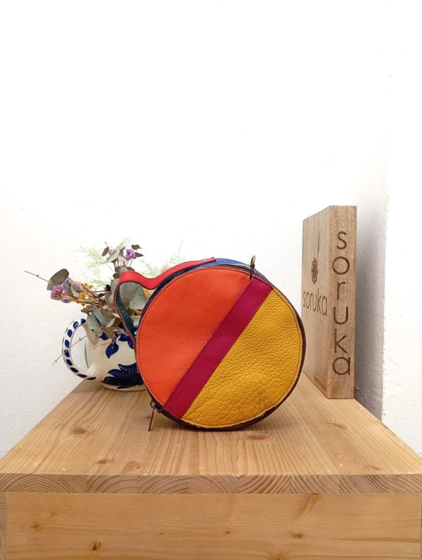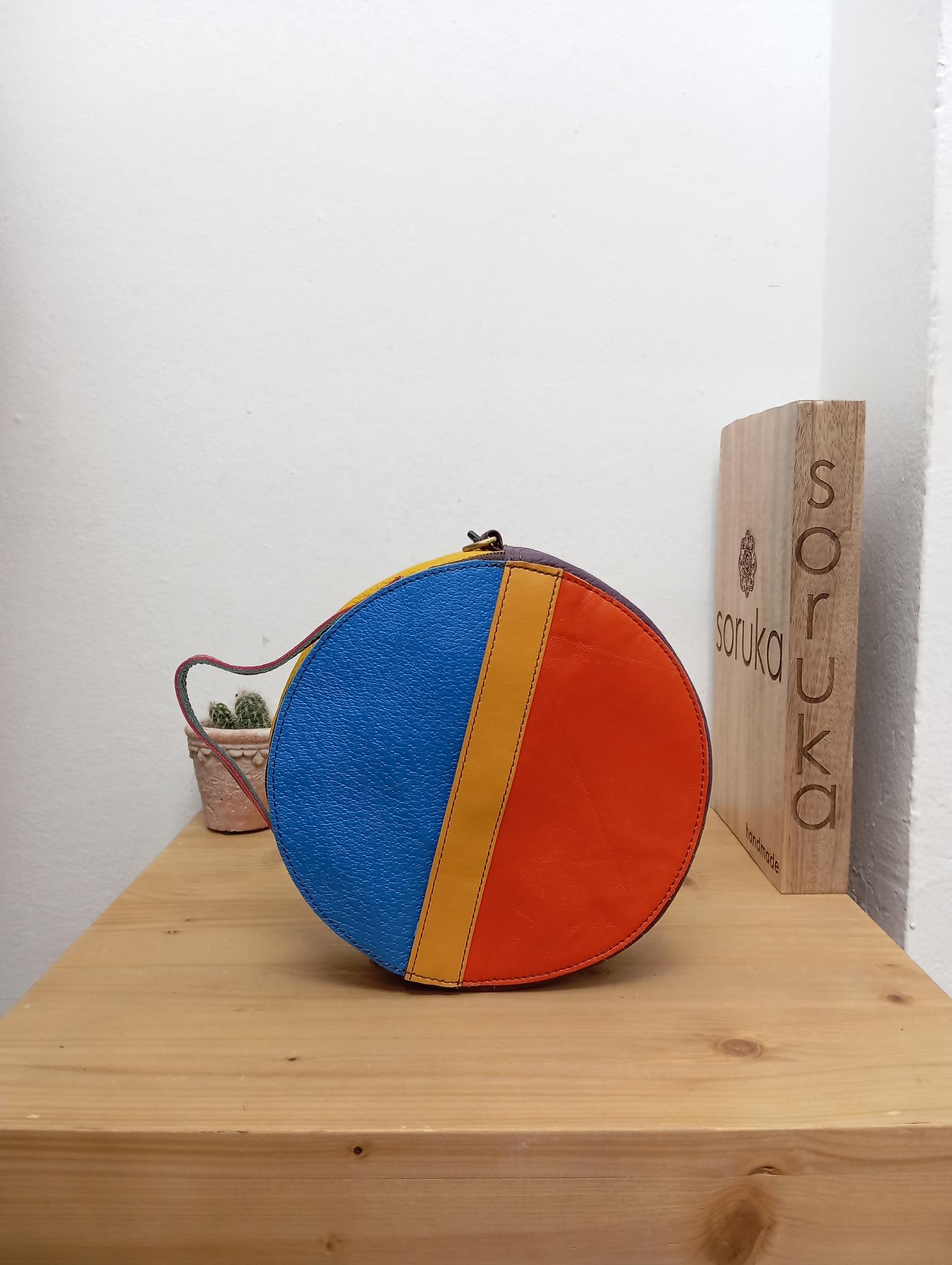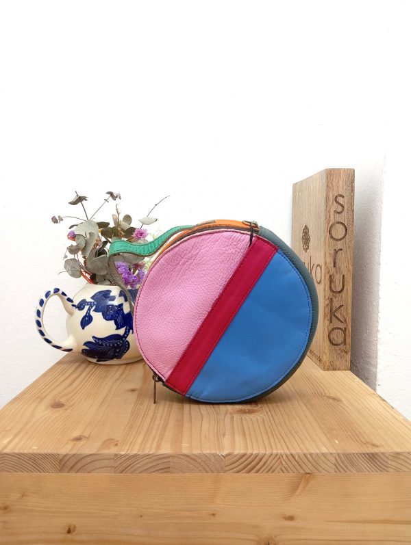 Borsa dalla forma tondeggiante multicolore particolare ed elegante. Dotata di uno scomparto unico chiuso da una zip e una taschina interna con zip. Interno rivestito in morbido tessuto. Tasca esterna anteriore con chiusura magnetica. Dotata di piccolo manico.