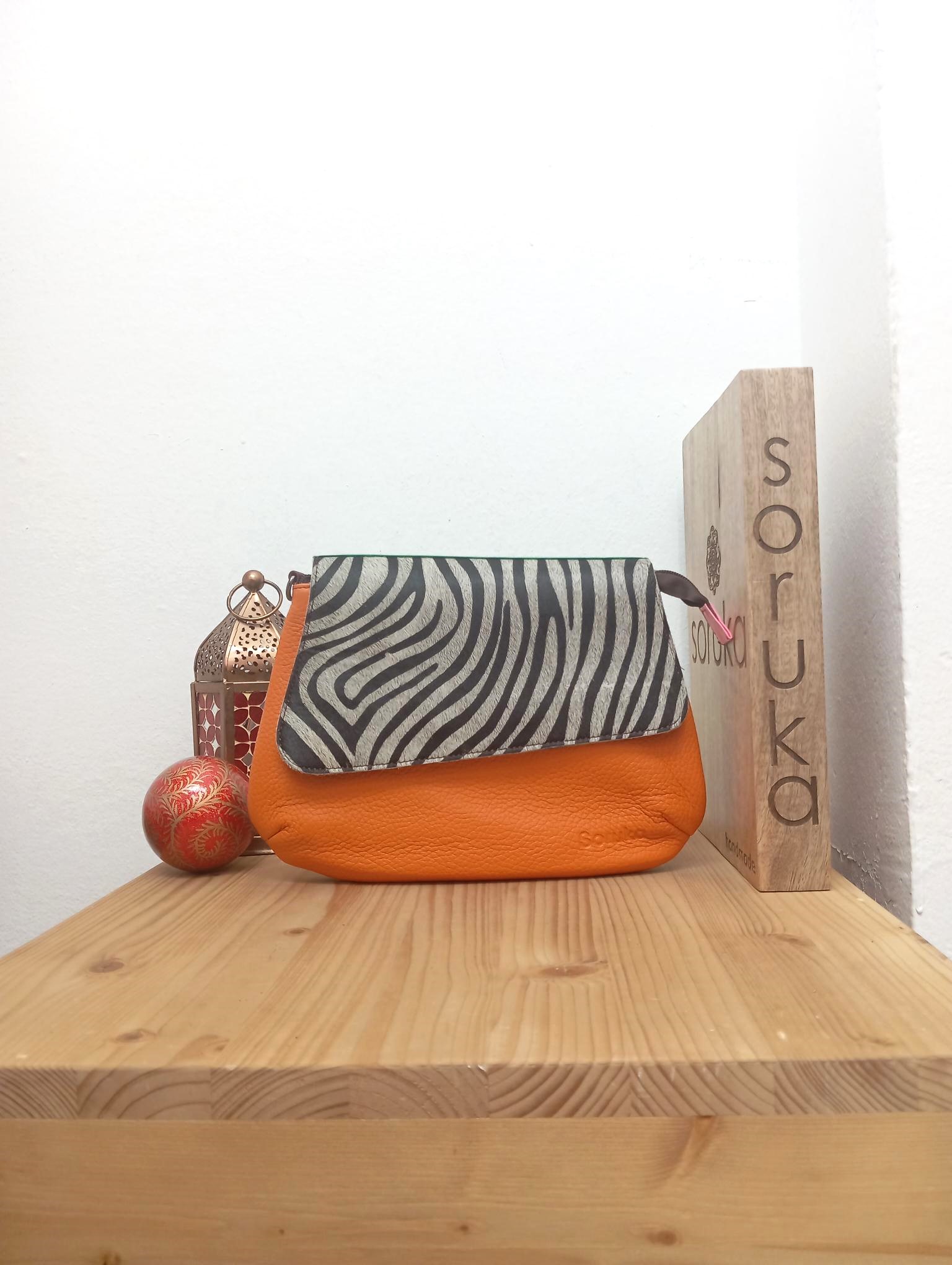 Borsetta con patta removibile e reversibile. Chiusura con cerniera e taschina con zip all’interno della borsa. Tracolla in pelle regolabile.
