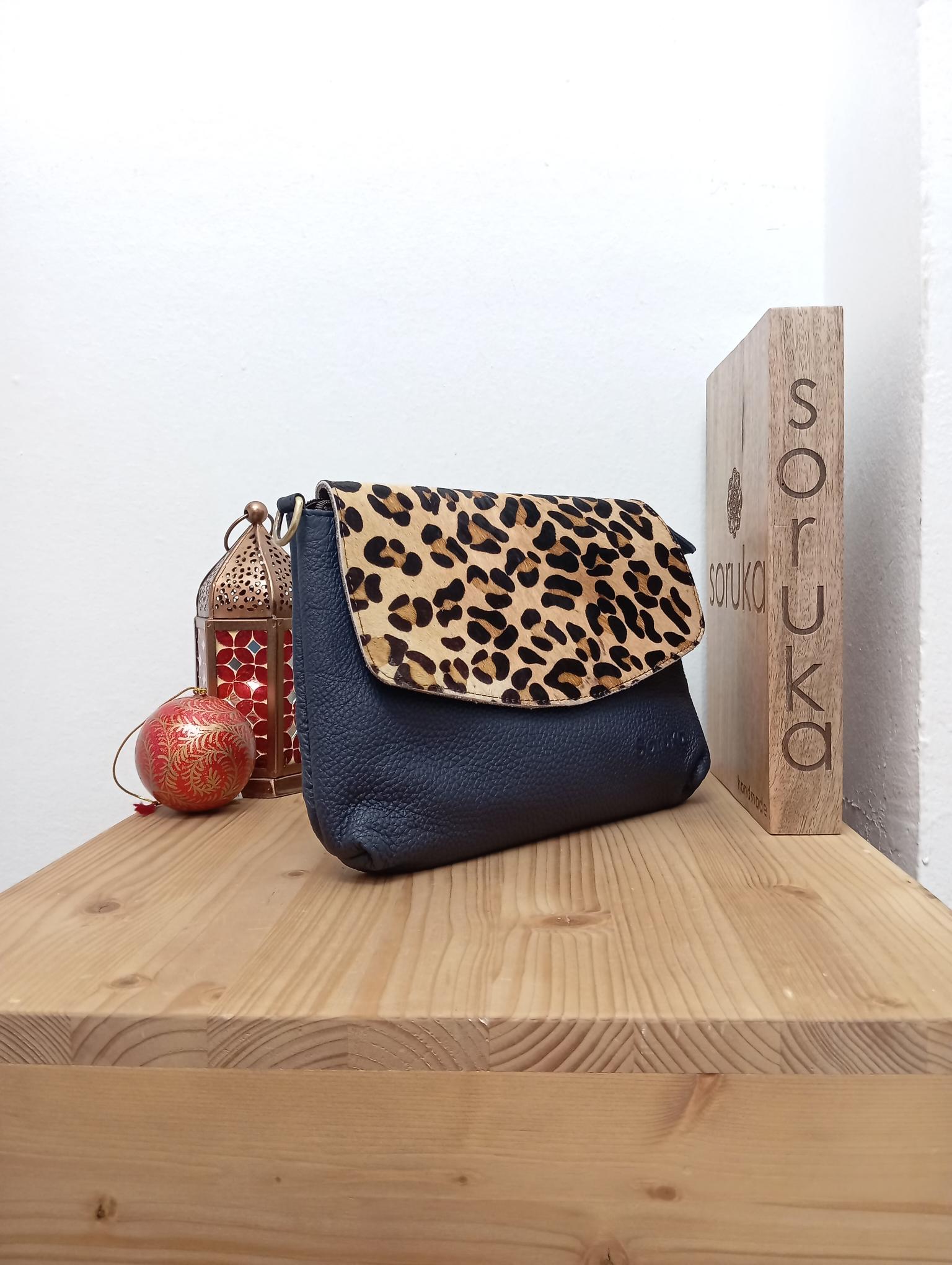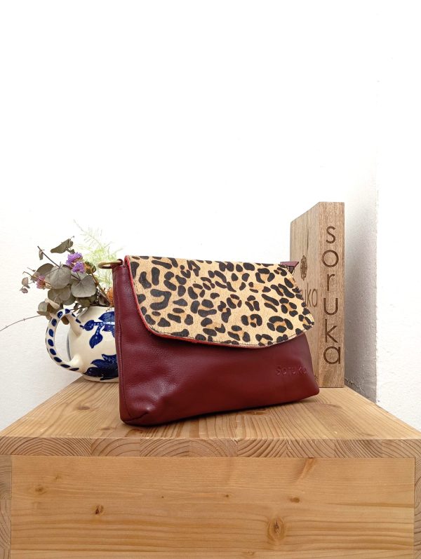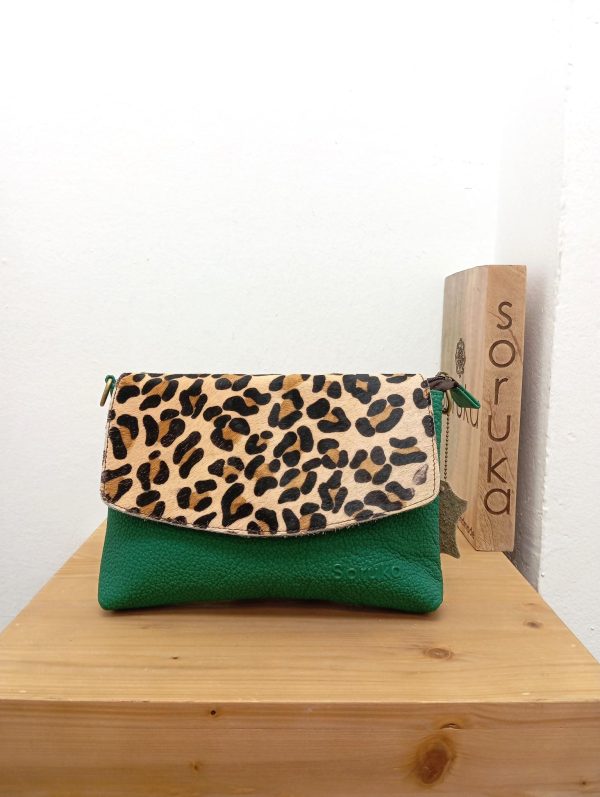 Borsetta monocolore a busta con patta con fantasia animalier. La borsa presenta un unico scompartimento con chiusura a zip e magnete sulla patta. All’interno rvestimento in stoffa e taschina portaoggetti con chiusura a zip. Ulteriore tasca con zip sulla parte esterna posteriore e tracolla regolabile in pelle.