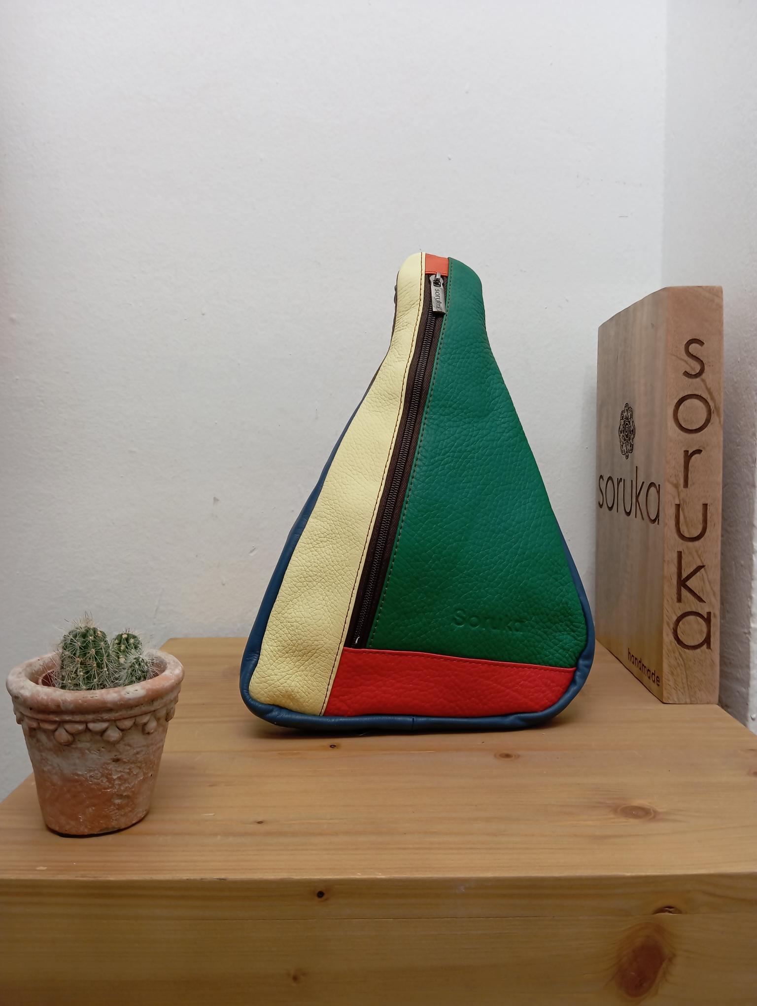 Morbido monospalla in pelle con due tasche con chiusura a zip, una frontale più grande e una posteriore più piccola. Spallina regolabile.
